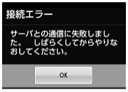 「接続エラー」と表示された場合は、管理サイトと通信できないため、BCDMアンチウイルスの認証ができない状態です。電波がよい場所に移動するか、しばらく時間をおいてからやり直してください。