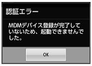 「認証エラー」と表示された場合は、管理サイトへのデバイス登録が完了していない状態です。対象デバイスが管理サイトに登録されているかを確認してからやり直してください。