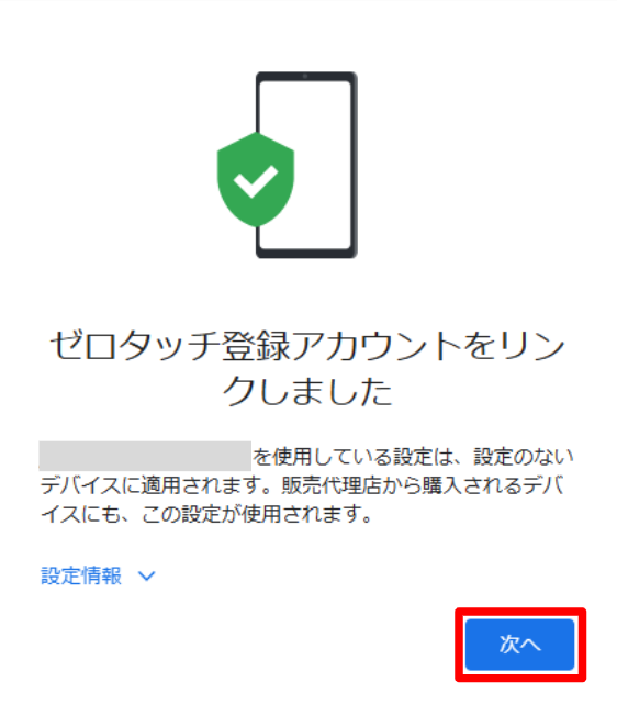 ・以降の手順は、Fully managed deviceでEMM識別子(EMMトークン)またはGoogleアカウントを利用して設定する場合と同様です。