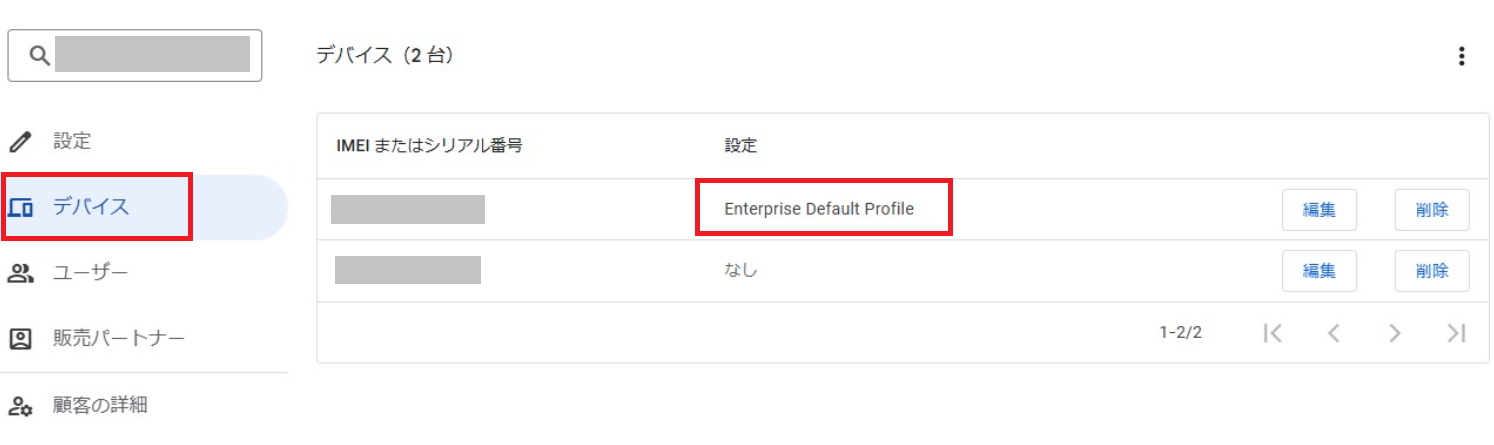 ・ 「Enterprise Default Profile」は設定には表示されないため、編集・削除できません。