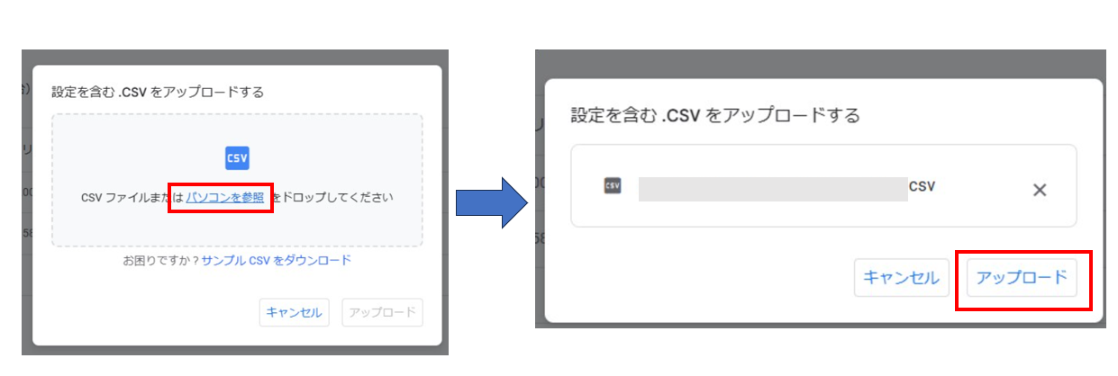 4.作成したCSVファイルをアップロードします。