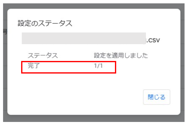 CSVアップロードが完了すると、左下に「詳細を表示」が表示されます。