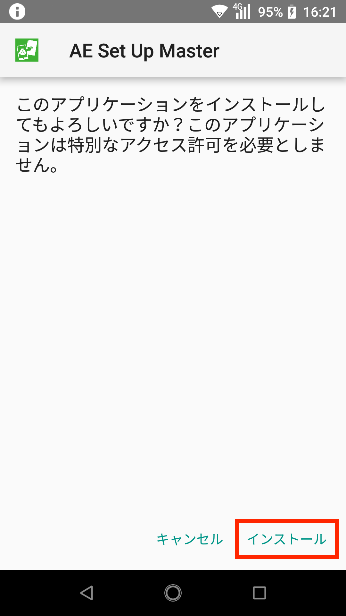 5.「AE Set Up Master」のインストール確認画面が表示されたら、「インストール」をタップします。