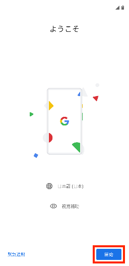 1.管理対象にするデバイスを起動し、使用する言語を設定して「開始」をタップします。