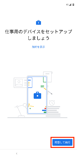 9.端末の設定を確認する画面が表示されたら、「同意して続行」をタップします。