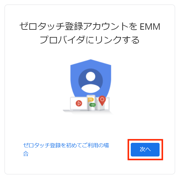 別タブで「ゼロタッチ登録アカウントをEMMプロバイダーにリンクする」画面に遷移します。