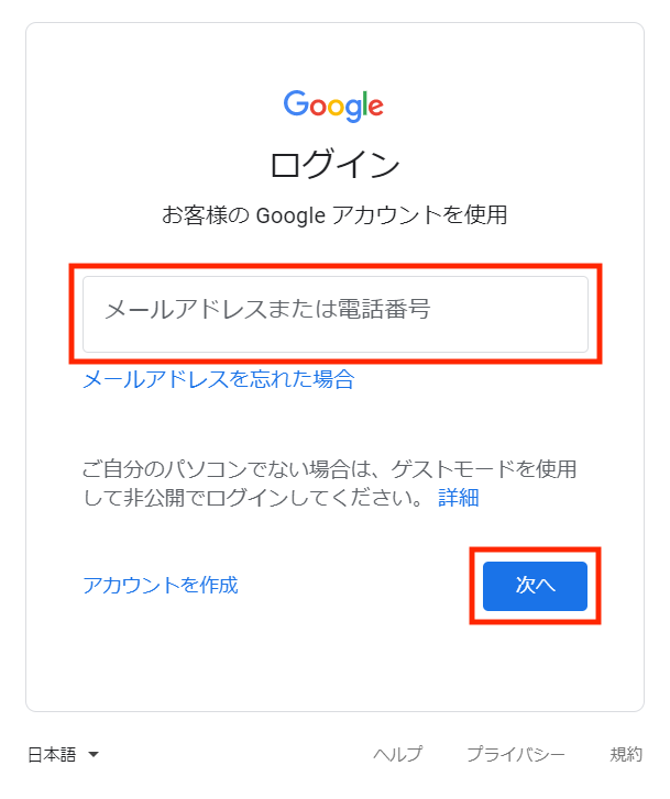 5.Googleアカウントを入力した場合は、パスワードを入力して「次へ」をタップし、画面に表示される利用規約などを確認・同意して、次へ進みます。
