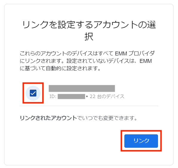 5.アカウントにチェックを入れて「リンク」ボタンを押下します。