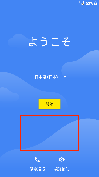 2.デバイスを起動し、「ようこそ」と表示されたら、画面の青い部分を6回タップします。