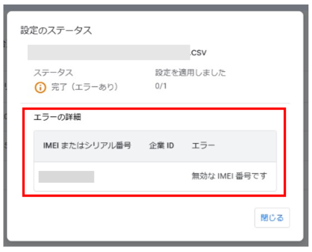 エラーの詳細が表示されます。