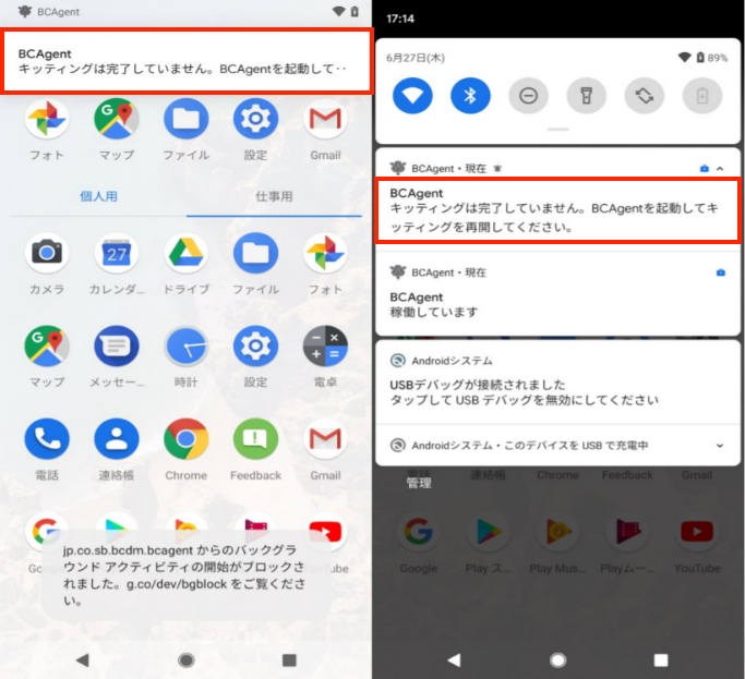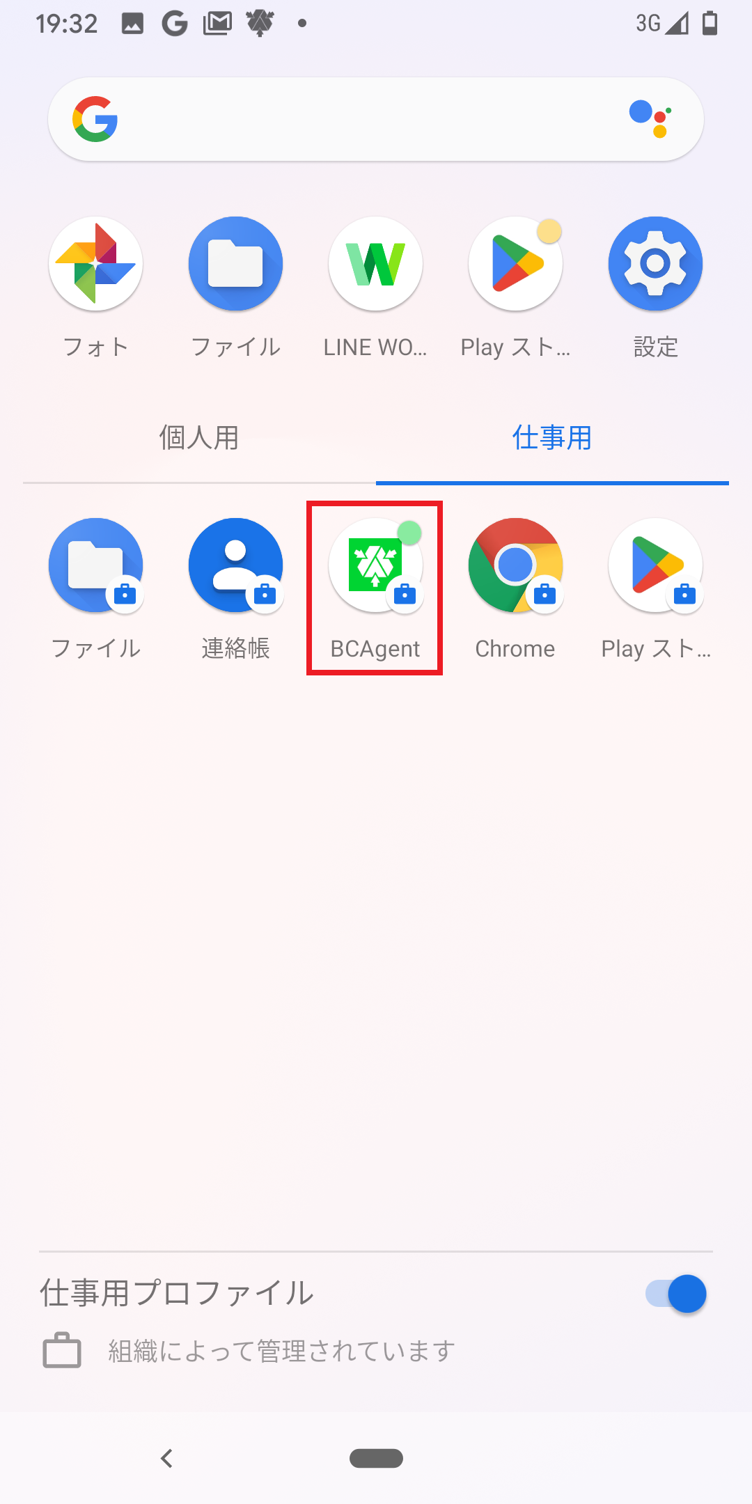 Android Enterpriseを使用しているEMM識別子(EMMトークン)またはGoogleアカウントを利用して、BCAgentをインストールします。