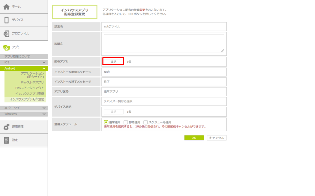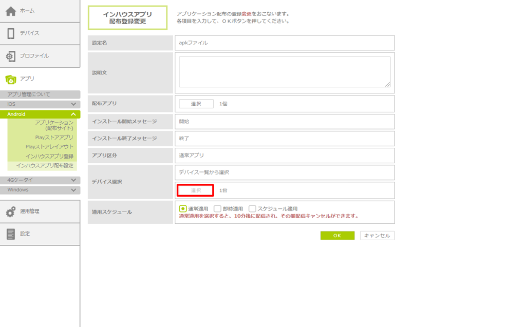 4.11.4. インハウスアプリの配布設定・配布対象デバイスを変更する