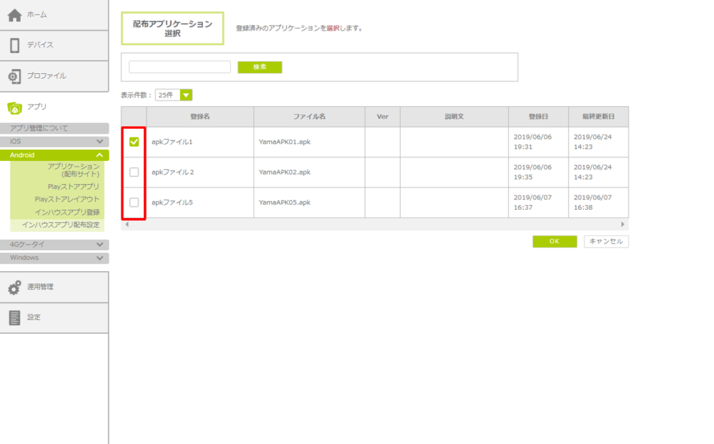 チェックを外して登録すると、該当アプリケーションがデバイスからアンインストールされます。
