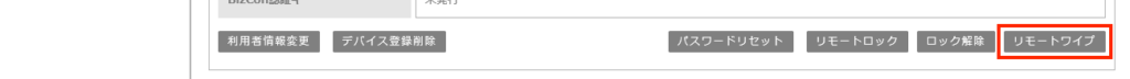 2.「利用者」の項目の「リモートワイプ」ボタンをクリックします。