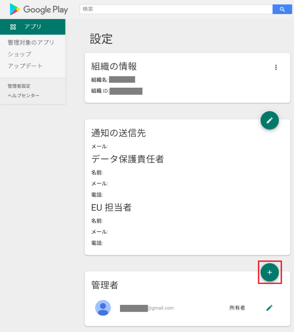 「managed Google Play Accountを設定する」の手順10.で、managed Google Playの管理者(「データ保護責任者」、「EU担当者」)を設定していない場合は、以下の手順で設定します。