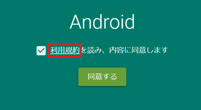 利用規約の画面に戻りますので、[☑]を付け、[同意する]を選択します。