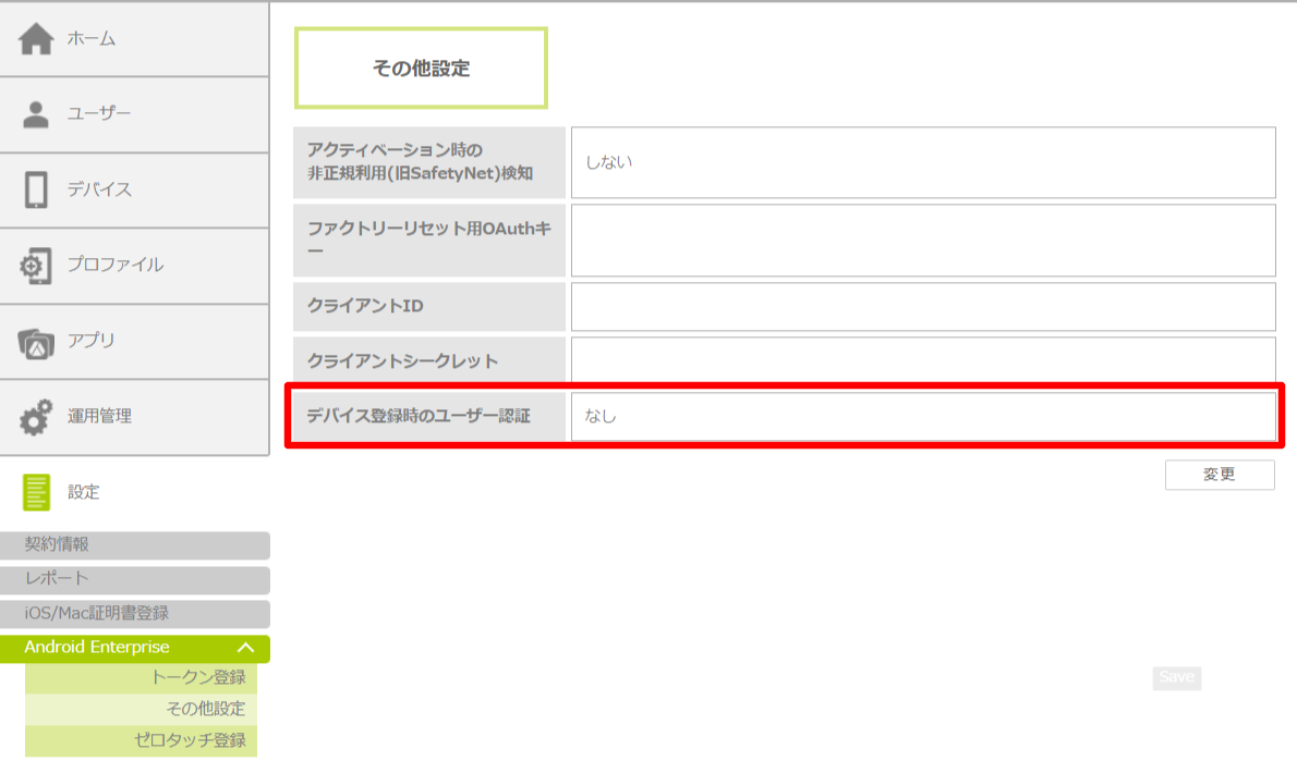 - 「なし」:デバイス登録時にユーザー認証をしない、従来通りのデバイス登録方法となります。