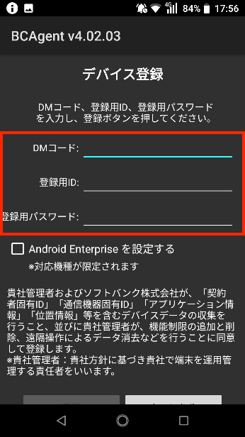 デバイス登録を行うと、当社およびデバイスの管理者が、以下のような事項を行うことに同意したものとみなされます。 ・使用するデバイス上の個人情報や位置情報を含むデバイスデータの収集 ・機能制限の追加と削除 ・遠隔操作によるデータ消去 |