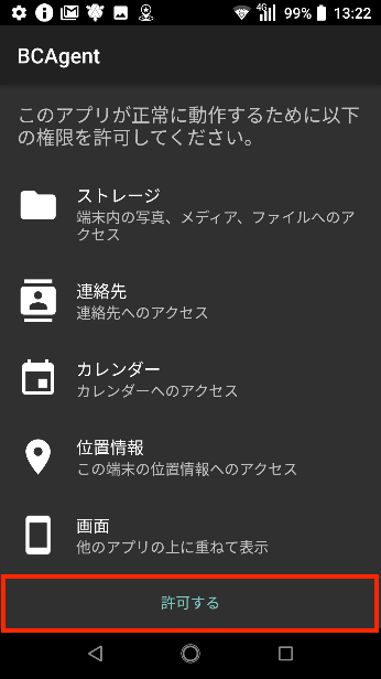 8.BCDMからのアクセスの許可画面が表示されたら、「許可する」をタップします。