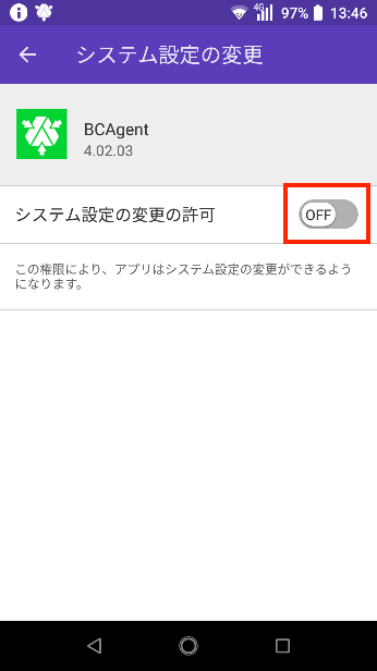 10.「システム設定の変更の許可」を「ON」にし、「戻る」をタップします。