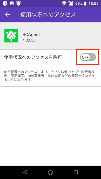 11.「使用状況へのアクセスを許可」を「ON」にし、「戻る」をタップします。