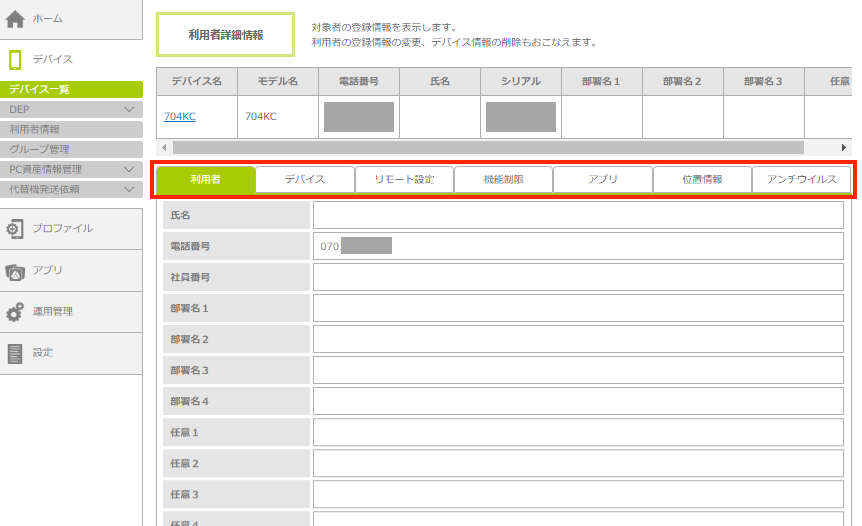 ・デバイスの機種・OSバージョンによりIMEIやエージェントIDの情報が取得できず、空白が表示されることがあります。