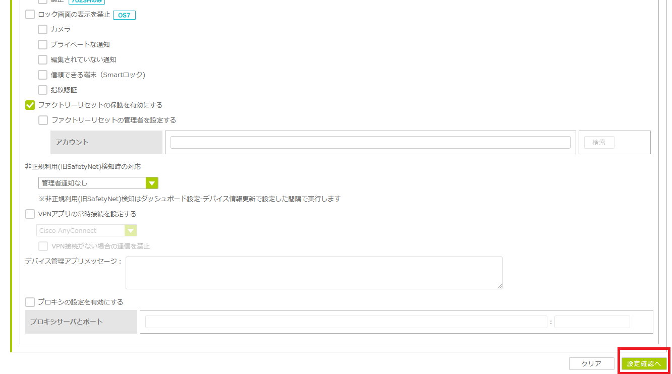 7.「設定確認へ」ボタンをクリックします。