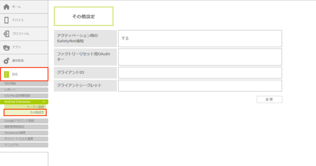 | SIMカードの変更検知 | SIMカードが変更されたデバイスを検知するかどうかを選択します。 | しない |