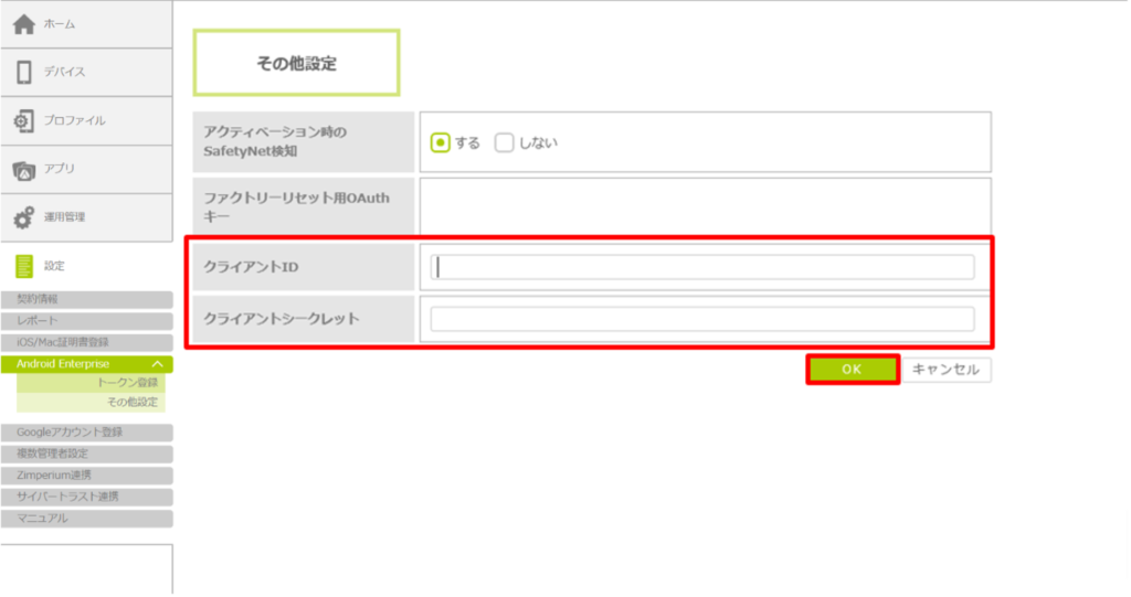 設定なし (Fully managed device の場合)-(Work profile の場合) |