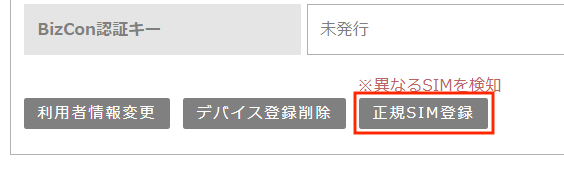 - 利用者詳細情報画面の正規SIM登録ボタンを押下