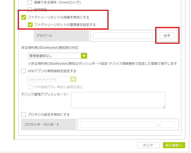 | 5 | ポリシー変更 | 変更検知時のデバイスロック「する」から「しない」に変更 |