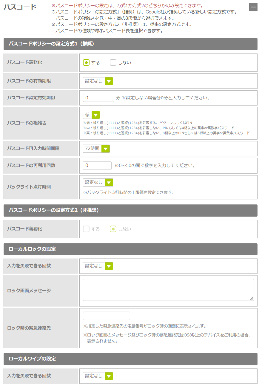 項目の説明-パスコードポリシーの設定方式2(非推奨)
