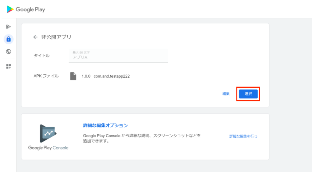 - インハウスアプリを登録する場合は、事前にGoogle Play Consoleを経由して、インハウスアプリをPlayストアにアップロードする必要があります。