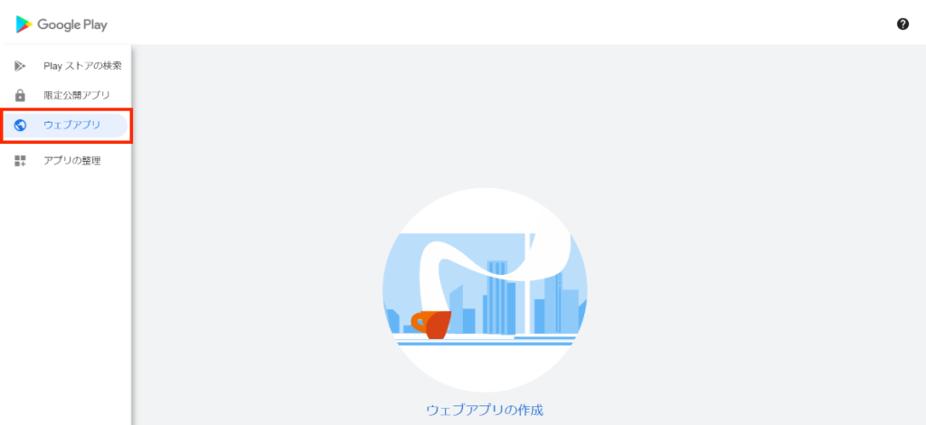 3.Google Play画面に移行したら「ウェブアプリ」をクリックします。