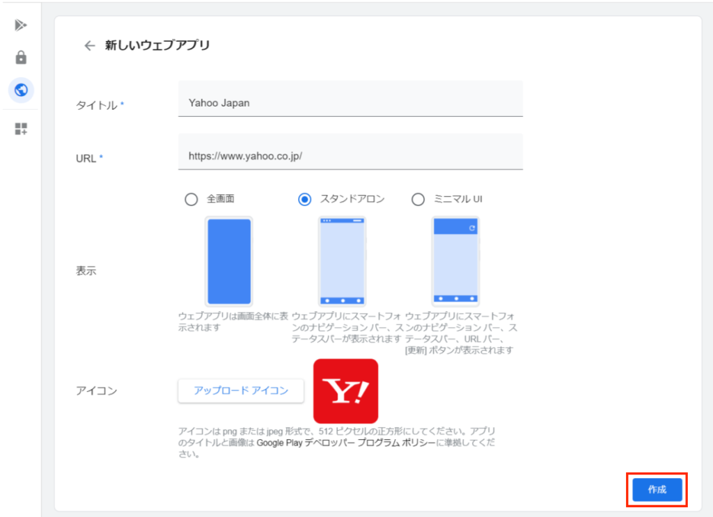 8.「Playストアアプリ」に選択したウェブアプリが表示されます。