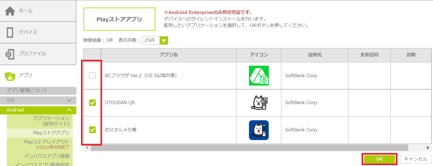 配布対象のPlayストアアプリを選択する画面が表示されます。