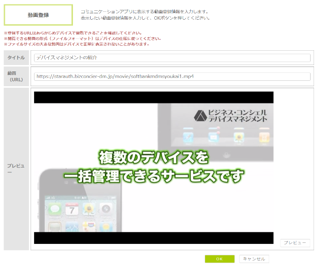 | ・ 動画ファイルは極力軽量にして、3G回線でも耐えうる品質にしておくことを推奨します。