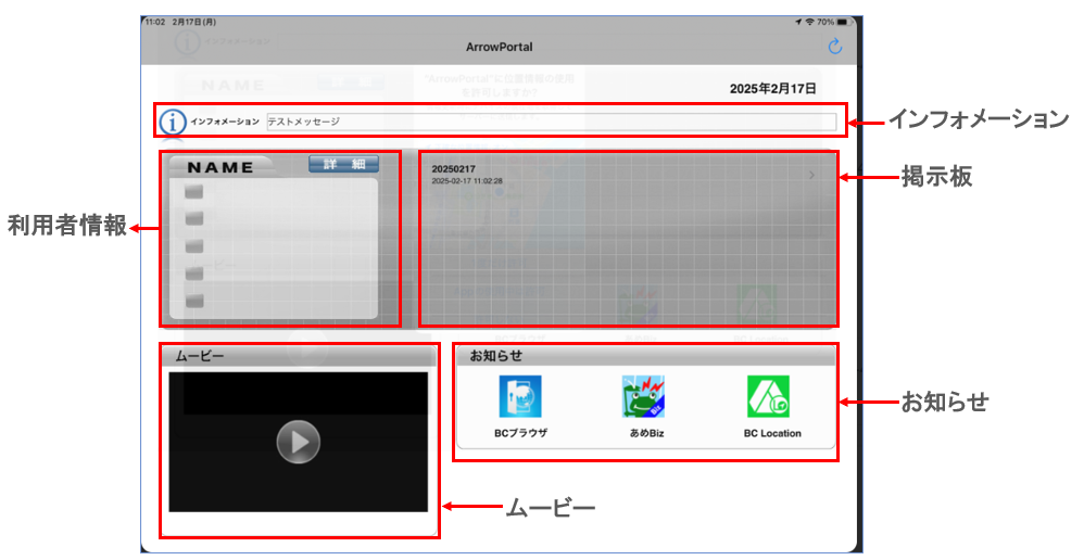 BizConPlace/ArrowPortalを起動すると、以下のメイン画面が表示されます。