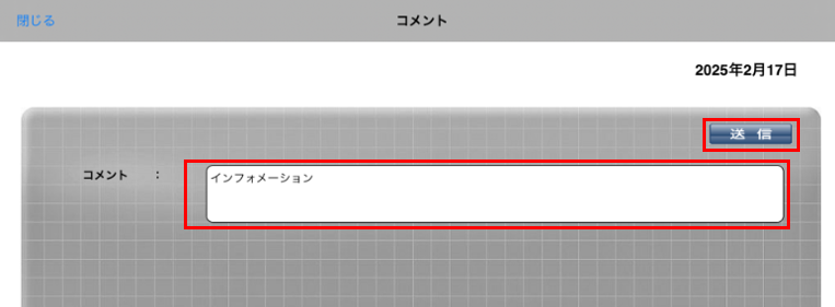 3. 返信するコメントを入力し、「送信」ボタンをタップします。