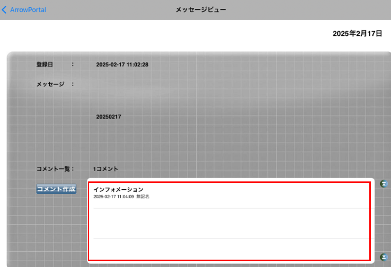 ・管理者がコメントを「公開」に設定している場合は、メイン画面で掲示板の文言をタップすると、自分や他の利用者が返信したコメントが表示されます。