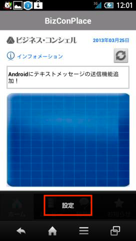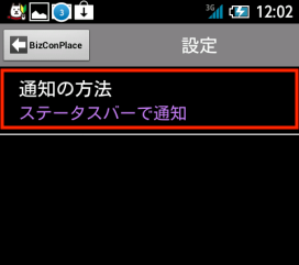 初期値ではメッセージまたはBizConPlaceのアイコンが画面上部のステータスバーに表示されるよう設定されています。
