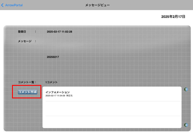 2. コメントを返信する場合は、「コメント作成」ボタンをタップします。