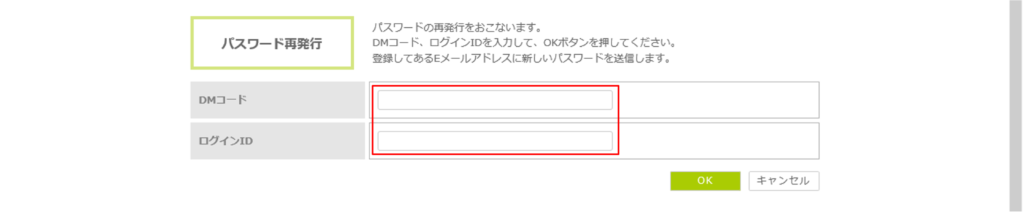 2. 「DMコード」、「ログインID」を入力します。