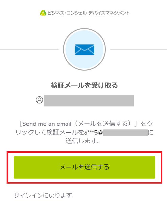 2. 「検証メールを受け取る」画面が表示されます。