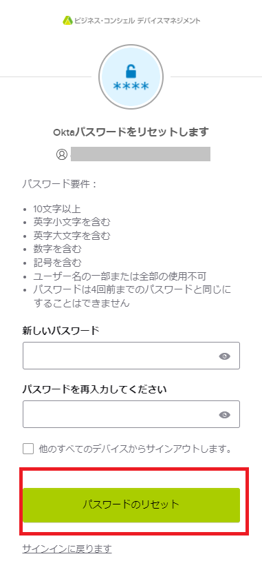 4. パスワードをリセットする画面になります。