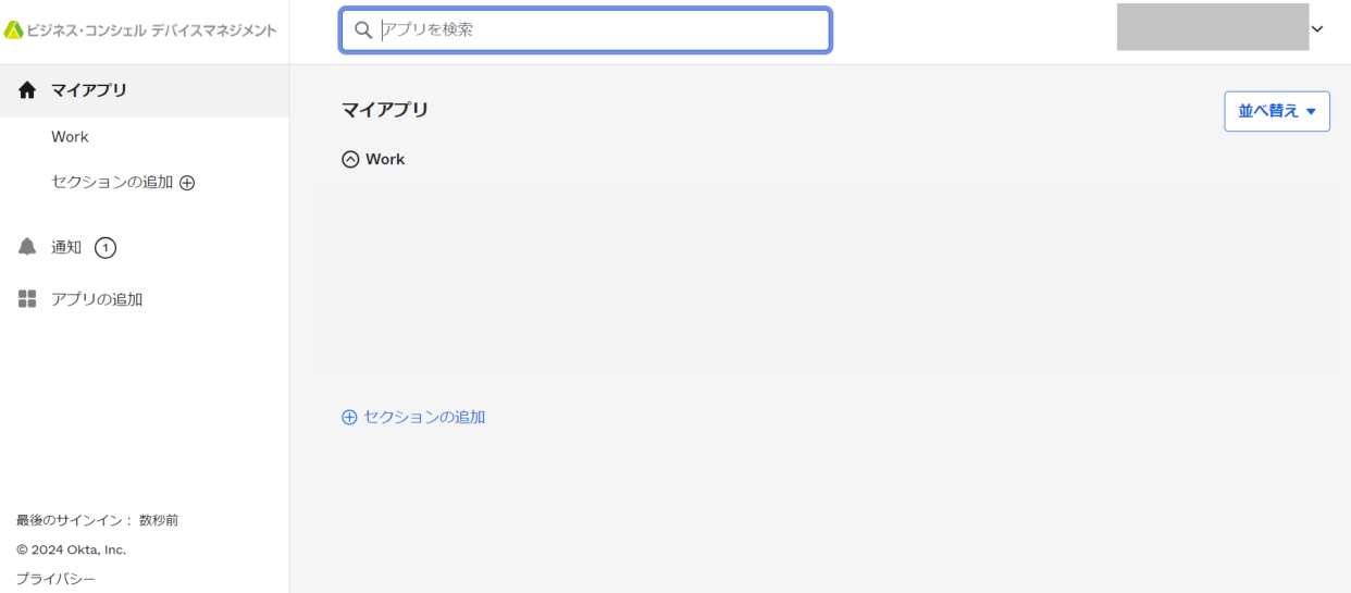 5.アカウントのロックが解除されると「Okta Dashboard」画面にサインインします。
