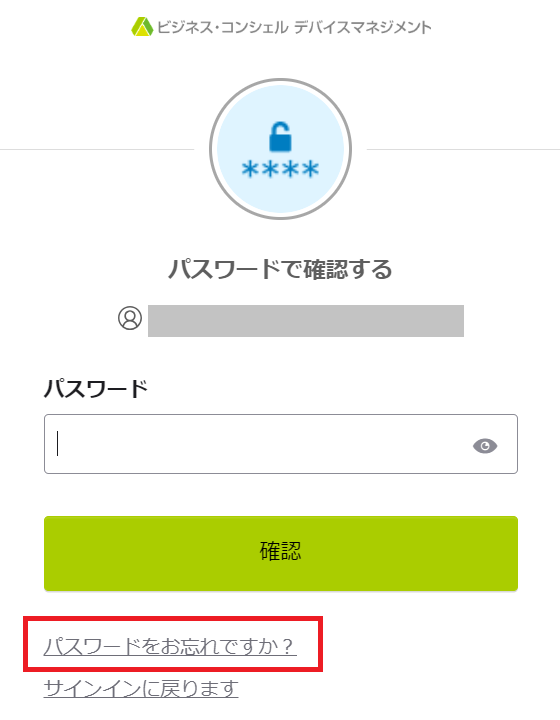 パスワードを入力し「確認」ボタンをクリックします。
