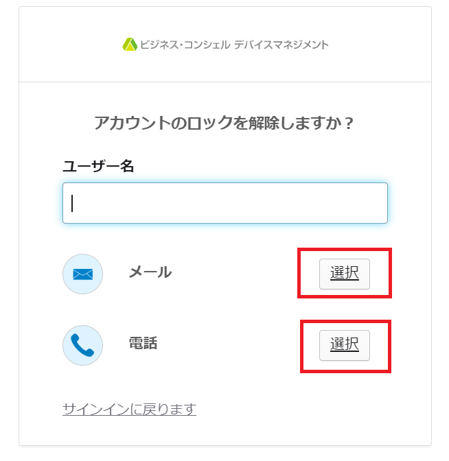 ユーザー名を入力し、「メール」か「電話」どちらかを選択してください。