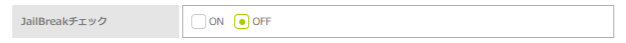 | JailBreakチェック | JailBreakチェックを行う場合は、「ON」を選択します。 初期設定は「OFF」(チェックしない)になっています。 |