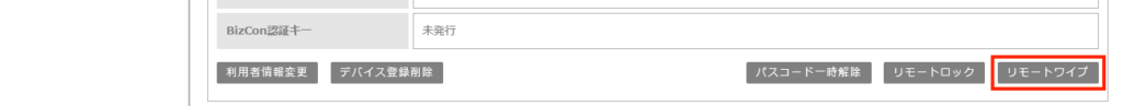 2.「利用者」の項目の「リモートワイプ」ボタンをクリックします。